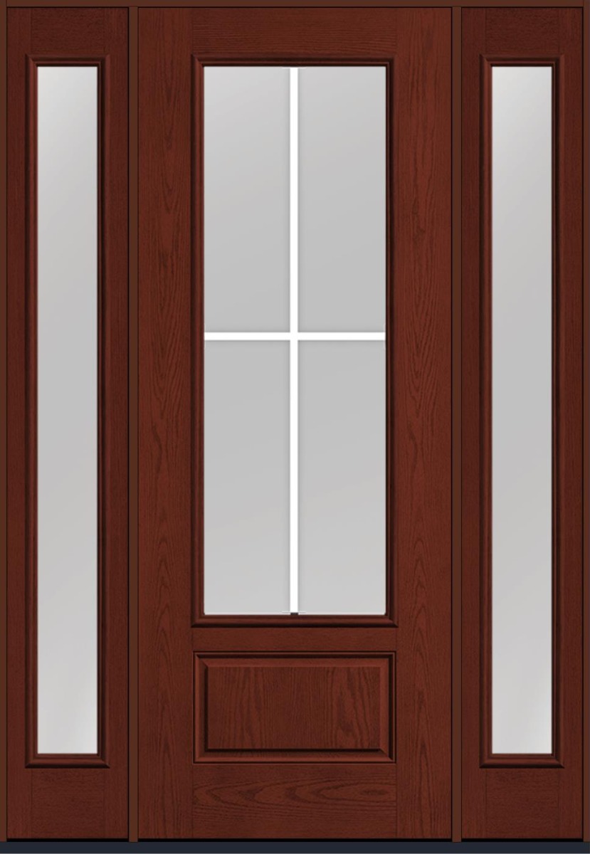 96" Low-E Colonial 4 Lite Contoured GBG Oak 3/4 Lite 1 Panel Fiberglass Single Door, Full Sidelites