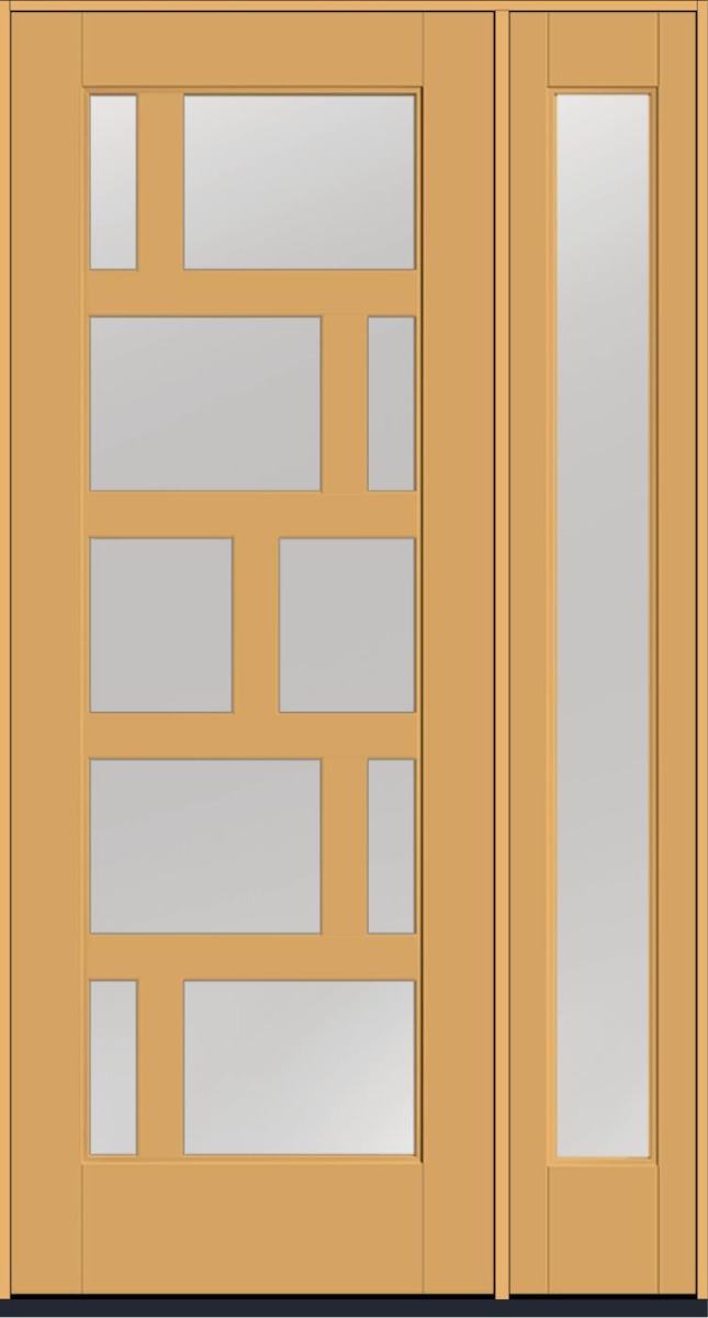 96" Low-E Contemporary Asymmetrical 10 Lite Left SDL Flat 3-1/2" Smooth Full Lite Flush-Glazed Fiberglass Single Door, Full Sidelite