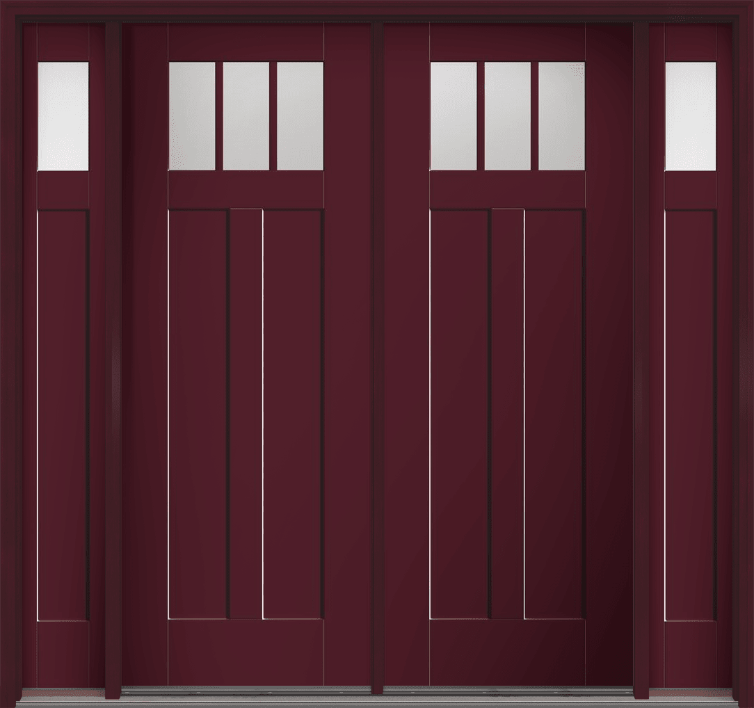 96" Low-E Craftsman 3 Lite 2 Panel Shaker SDL Flat 1-1/8" Smooth Flush-Glazed Fiberglass Double Door, Sidelites