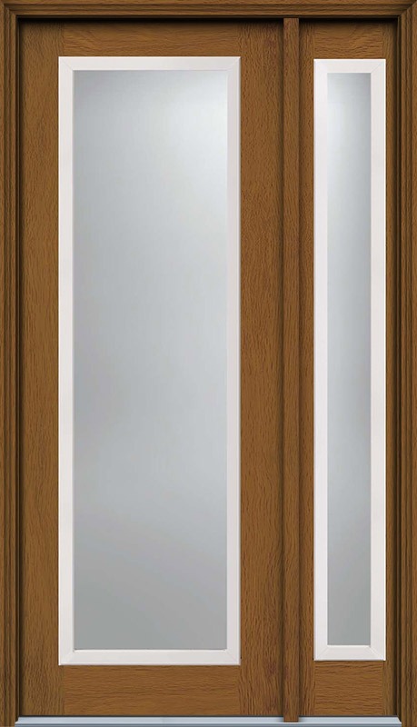 96" Low-E Full Lite Contemporary Woodgrain Fiberglass Single Door, Sidelite, HVHZ Imapct