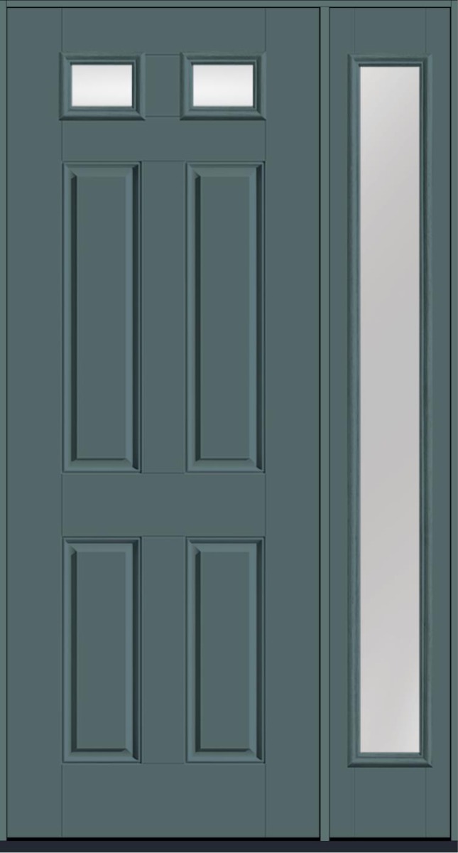 96" Low-E Top View 2 Lite 4 Panel Smooth Fiberglass Single Door, Full Sidelite