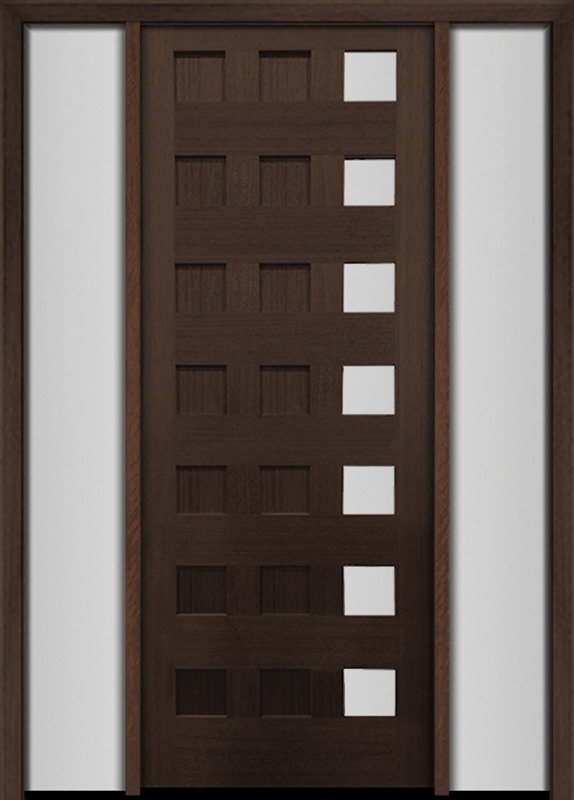 96" Mahogany Carlo Square 7 Lite TDL Contemporary Modern Single Door/2Sidelite