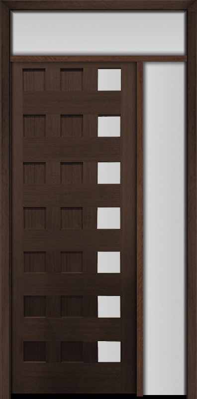 96" Mahogany Carlo Square 7 Lite TDL Contemporary Modern Single Door/Sidelite & Rec Transom
