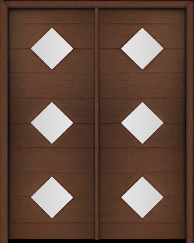 96" Mahogany Flores Diamond 3 Lite Contemporary Modern Double Door