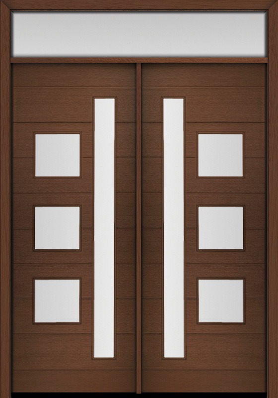 96" Mahogany Flores Mix 4 Lite Contemporary Modern Double Door & Rec Transom