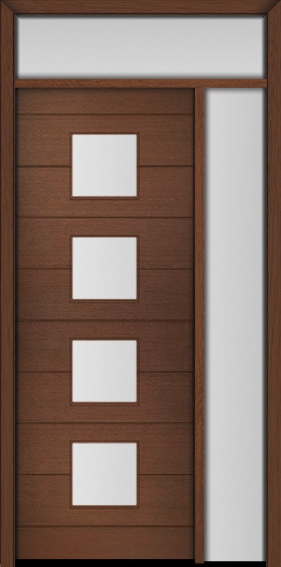 96" Mahogany Flores Square 4 Lite Contemporary Modern Single Door/Sidelite & Rec Transom