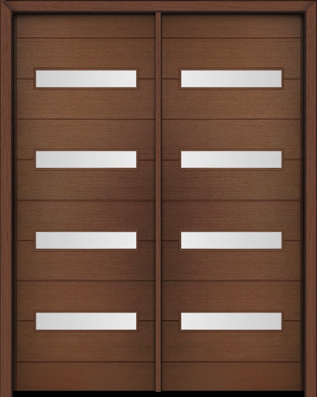 96" Mahogany Luca Horizontal 4 Lite Contemporary Modern Double Door