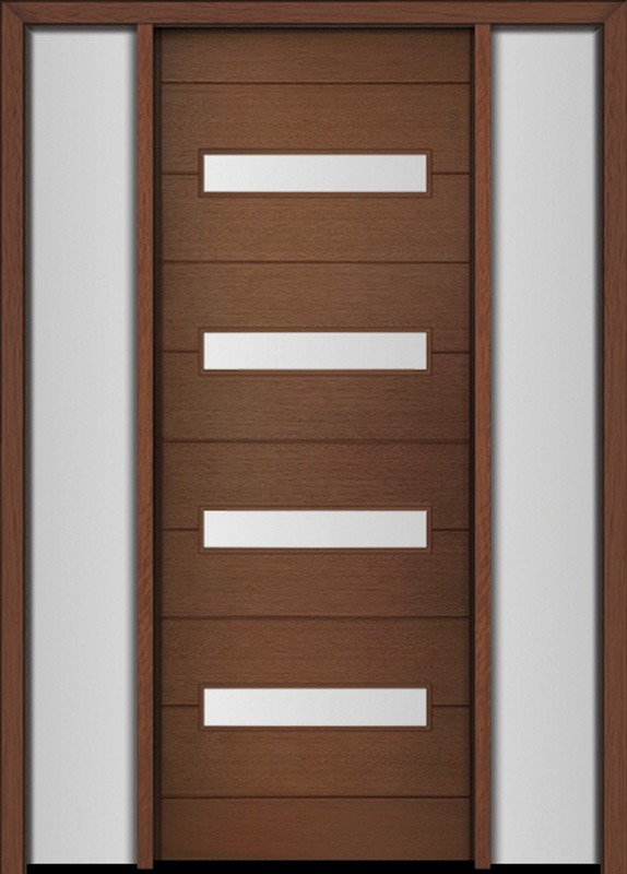96" Mahogany Luca Horizontal 4 Lite Contemporary Modern Single Door/2Sidelite