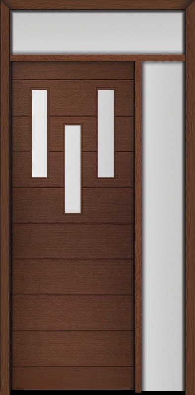 96" Mahogany Luca 3 Lite Top Contemporary Modern Single Door/Sidelite & Rec Transom