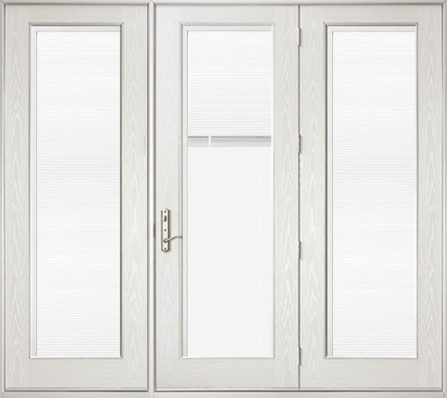 96" Mini Blind Full Lite Fiberglass Center Hinged Triple Door