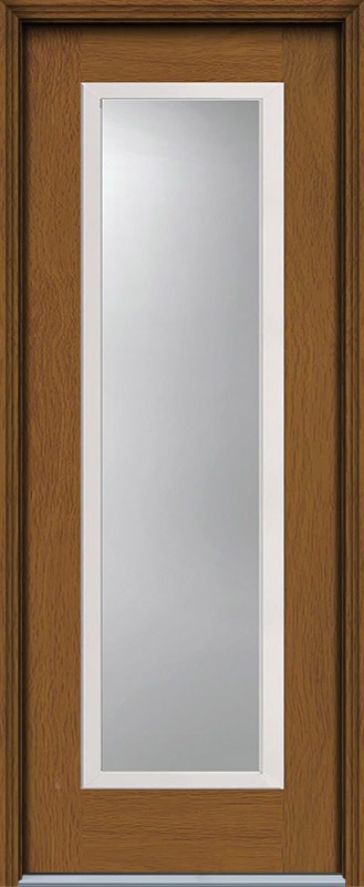 96" Narrow Full Lite Modern Woodgrain Fiberglass Single Door, HVHZ Imapct