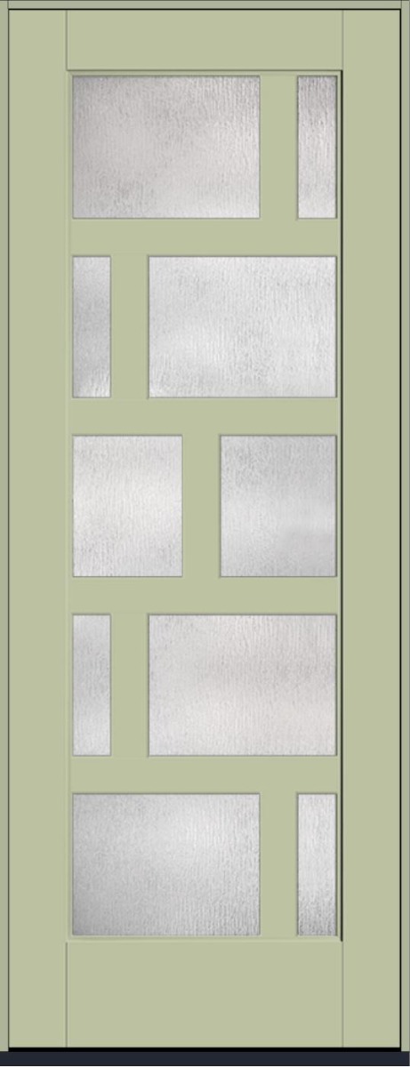 96" Rainglass Contemporary Asymmetrical 10 Lite Right SDL Flat 3-1/2" Smooth Full Lite Flush-Glazed Fiberglass Single Door