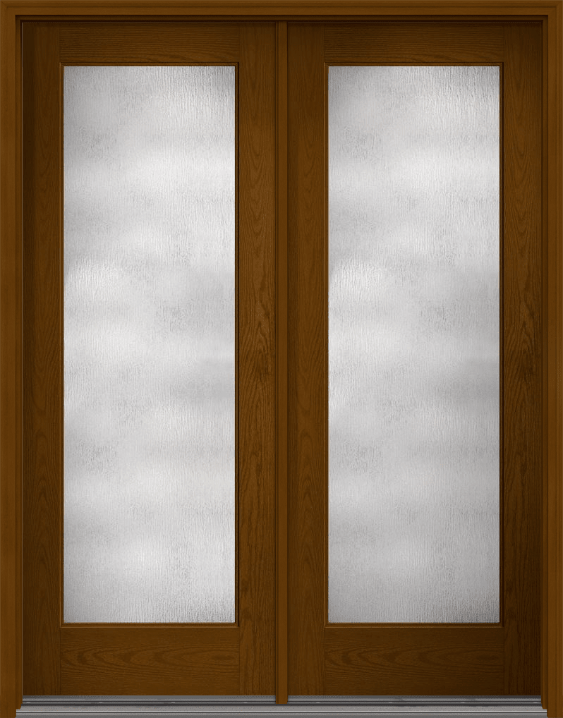 96" Rainglass Contemporary Modern Full Lite Oak Flush-Glazed Fiberglass Double Door