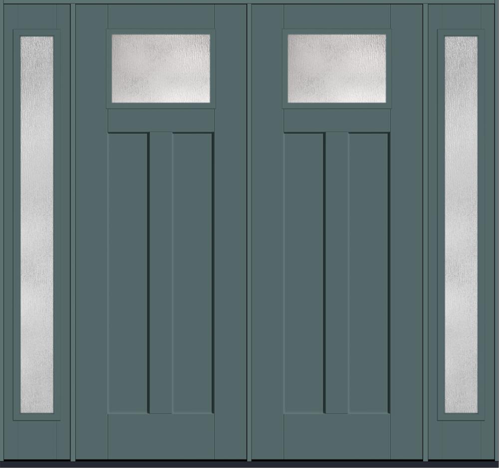 96" Rainglass Craftsman Top View 2 Panel Shaker Smooth Fiberglass Double Door, Full Sidelites