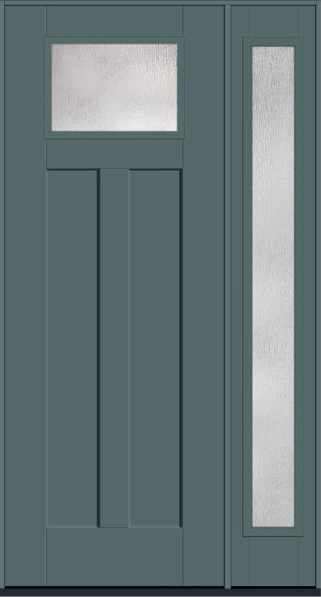 96" Rainglass Craftsman Top View 2 Panel Shaker Smooth Fiberglass Single Door, Full Sidelite