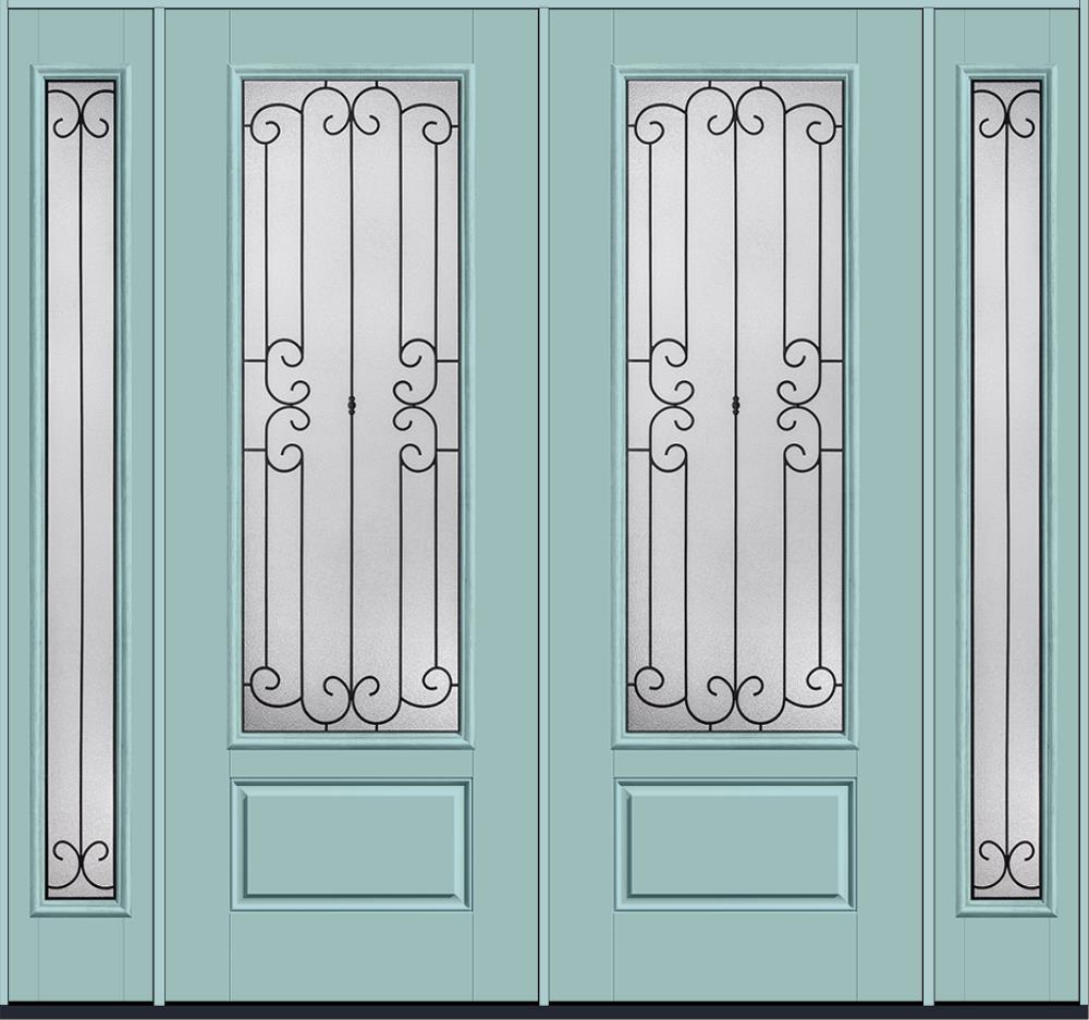 96" Riserva 3/4 Lite 1 Panel Smooth Fiberglass Double Door, Full Sidelites