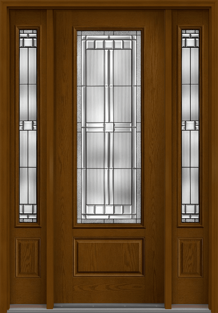96" Saratoga 3/4 Lite 1 Panel Oak Fiberglass Single Door, Sidelites