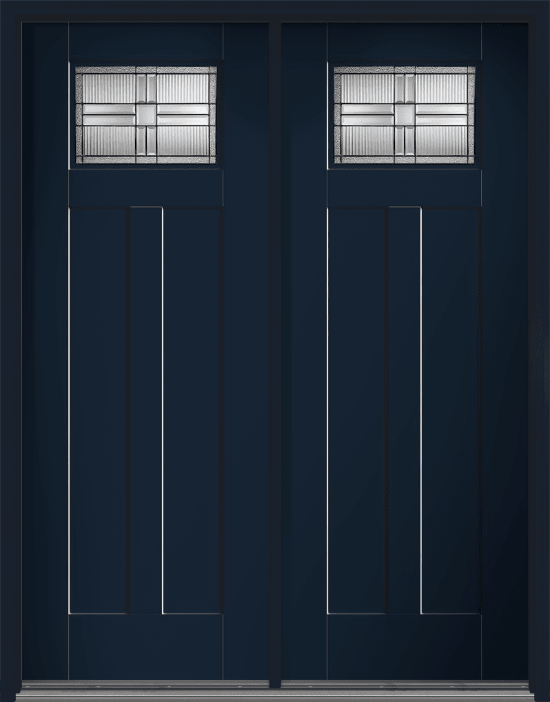 96" Saratoga Craftsman Top View 2 Panel Shaker Smooth Fiberglass Double Door