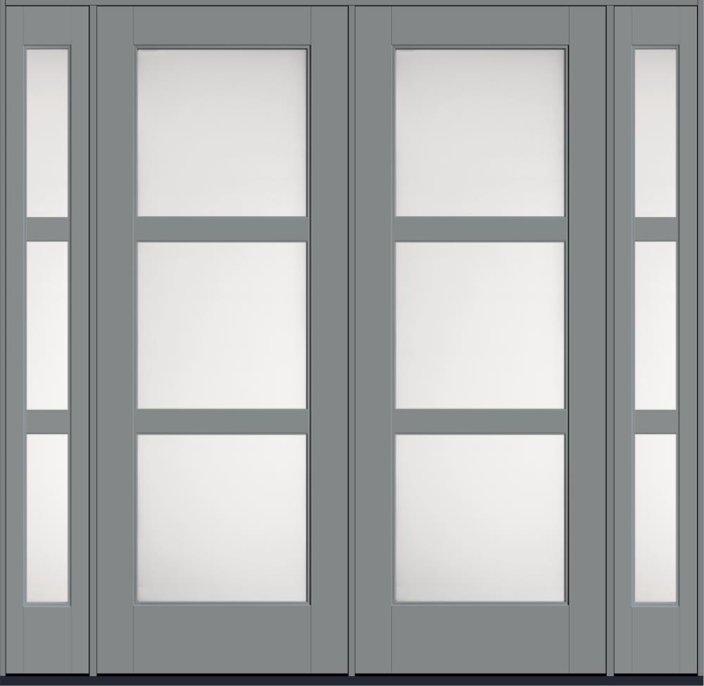96" Satin Etch Contemporary 3 Lite SDL Flat 3-1/2" Smooth Full Lite Flush-Glazed Fiberglass Double Door, Sidelites
