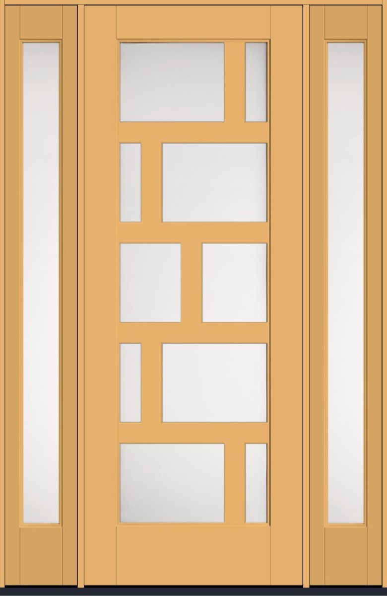 96" Satin Etch Contemporary Asymmetrical 10 Lite Right SDL Flat 3-1/2" Smooth Full Lite Flush-Glazed Fiberglass Single Door, Sidelites