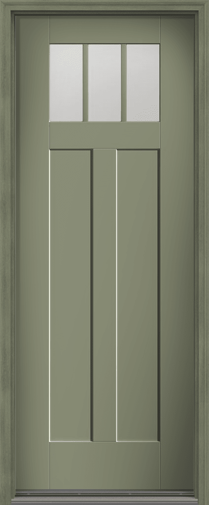 96" Satin Etch Craftsman 3 Lite 2 Panel Shaker SDL Flat 1-1/8" Smooth Flush-Glazed Fiberglass Single Door