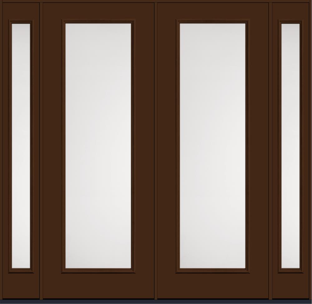 96" Satin Etch Full Lite Smooth Fiberglass Double Door, Sidelites