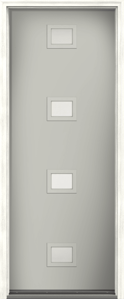 96" Satin Etch Modern Pulse Echo 4-Lite Centered Smooth Fiberglass Single Door