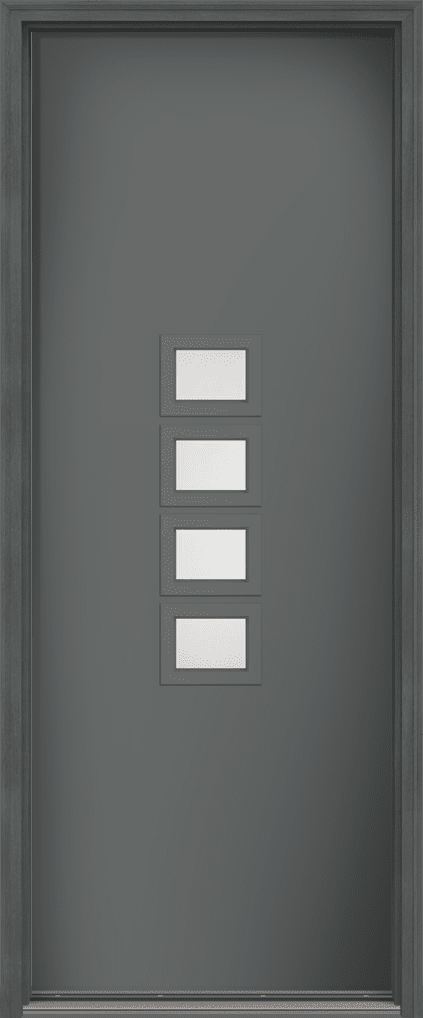 96" Satin Etch Modern Pulse Echo 4-Lite Middle Center Cluster Smooth Fiberglass Single Door
