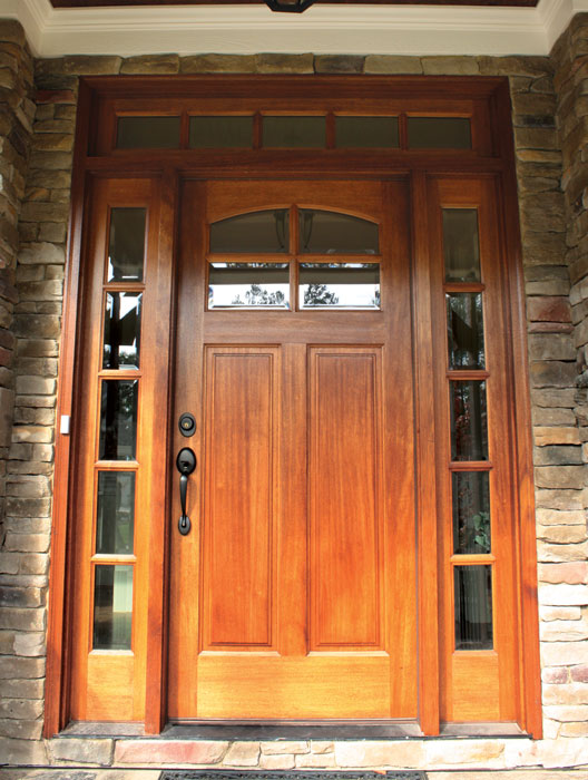 80" Craftman Mahogany Lakewood TDL 4 Lite Single Door/2Sidelite & Rec Transom