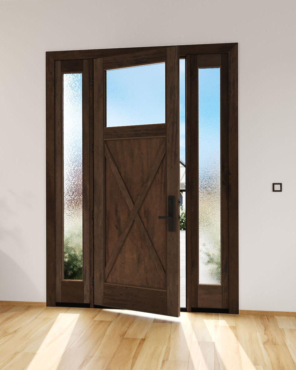 Mahogany Craftsman Top View Crossbuck Panel Shaker Single Door, Sidelites|CRF-CPG1-SH