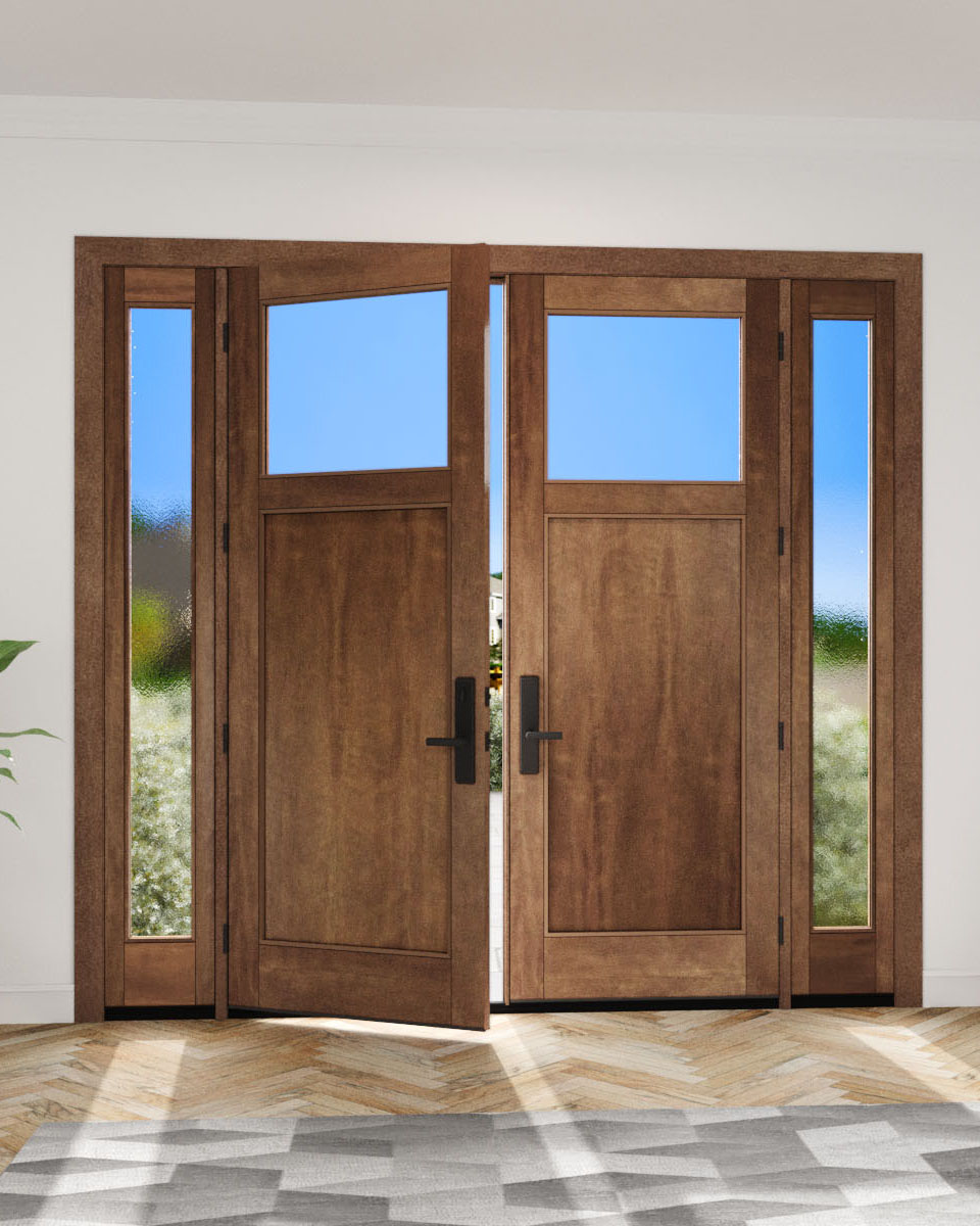 Mahogany Craftsman Top View 1 Panel Shaker Double Door, Sidelites|CRF-P1G1-SH