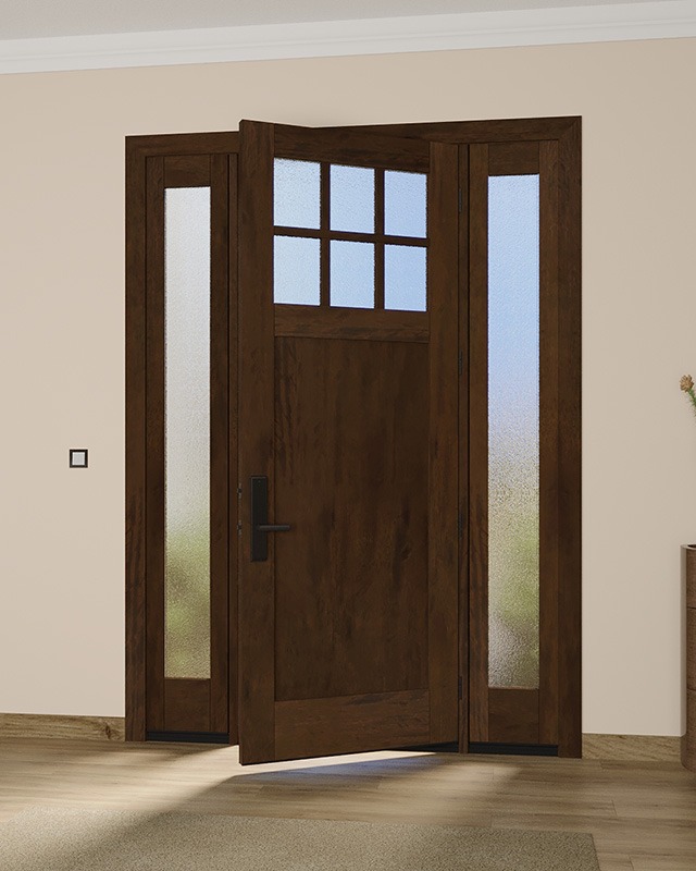 Mahogany Craftsman 6 Lite, Top View SDL 1 Panel Shaker Single Door, Sidelites|CRF-P1G6-SH