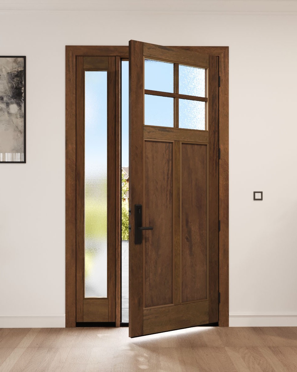 Mahogany Craftsman 4 Lite, Top View SDL 2 Panel Shaker Single Door, Sidelite|CRF-P2G4-SH
