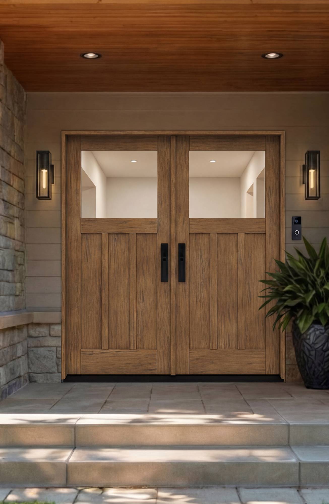 CRF-P3G1 | 80" | Mahogany Wood Top View 1-3/4" Exterior Double Door - DIY RTA Kit