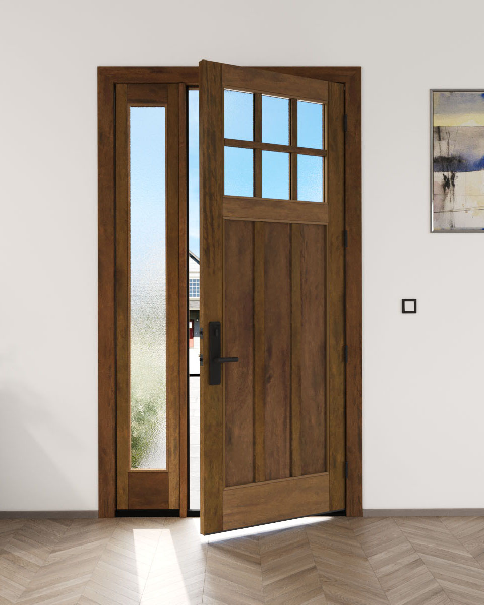 Mahogany Craftsman 6 Lite, Top View SDL 3 Panel Shaker Single Door, Sidelite|CRF-P3G6-SH