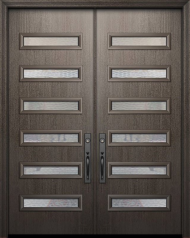 96" Double Beverly Mahogany Solid Contemporary Door w/Textured Glass