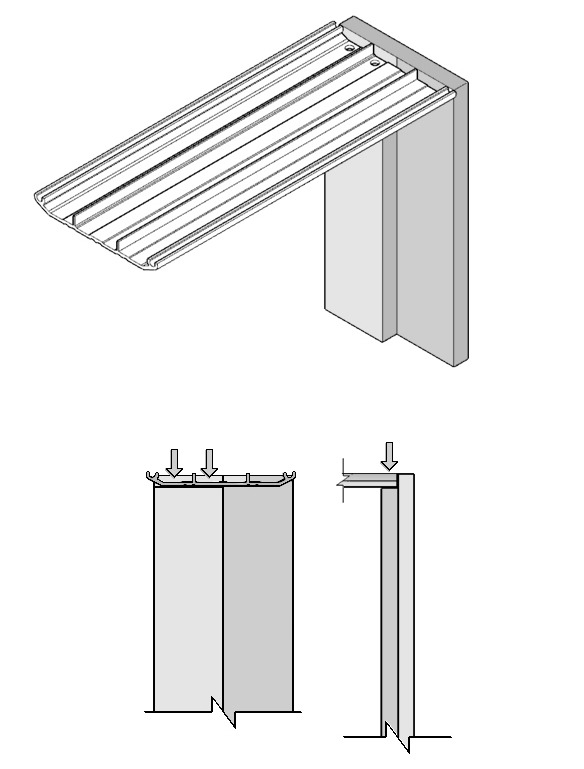 - Affix the shorter casing to the internal top of the doorway with finishing nails and apply silicone to the joining faces.