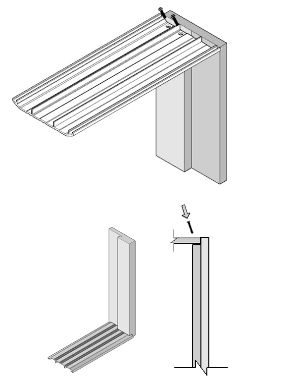 - Attach the header and sill to one side jamb with the provided screws, applying silicone to the joining faces.