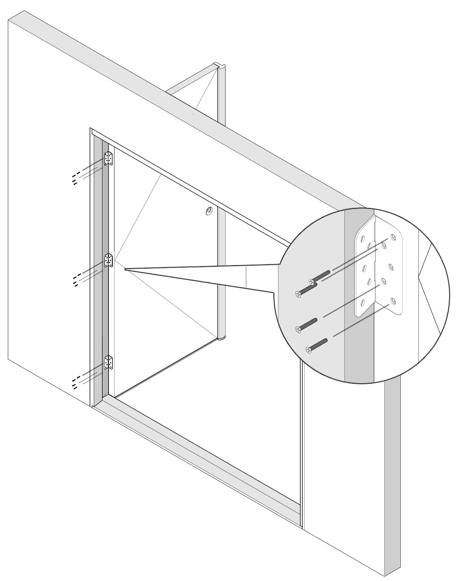 - Attach the frame to the rough opening with the appropriate screws (not provided) through the side jambs and the header.