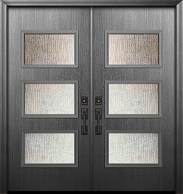 80" Double Santa Monica Mahogany Solid Contemporary Door w/Textured Glass