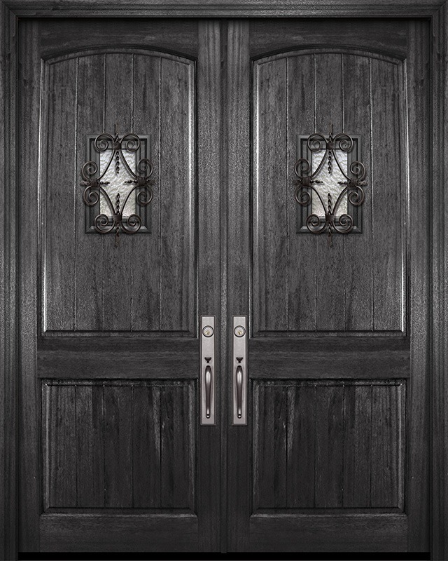 36" x 96" Double Arch 2 Panel V-Grooved DoorCraft Mahogany Door with Speakeasy