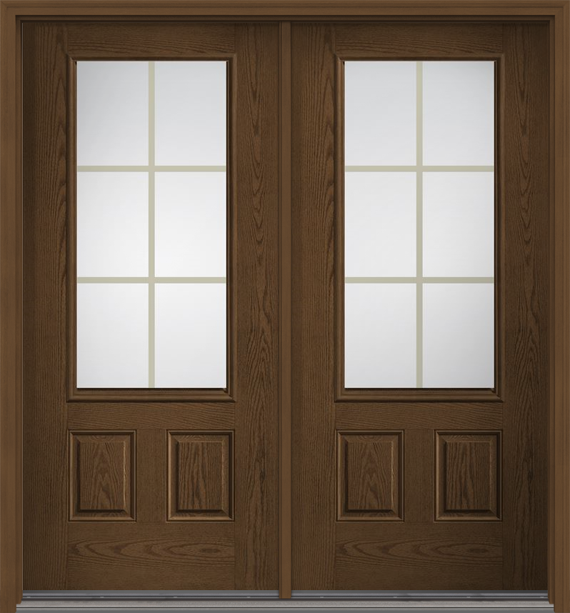 80 Low-E Colonial 6 Lite Flat Bar GBG Oak 3/4 Lite 2 Panel Fiberglass Double Doors , WBD Impact