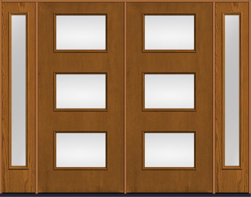 80 Low-E Modern Pulse Ari 3-Lite Oak Fiberglass Double Door,Sidelites , WBD Impact