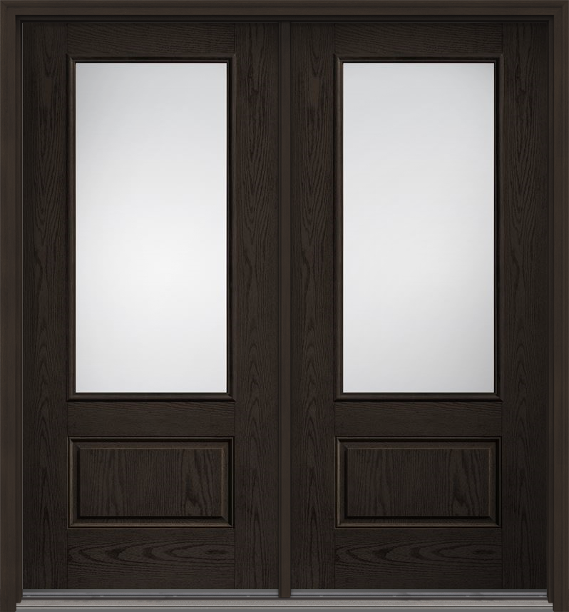 80 Low-E 3/4 Lite 1 Panel Oak Fiberglass Double Doors , WBD Impact