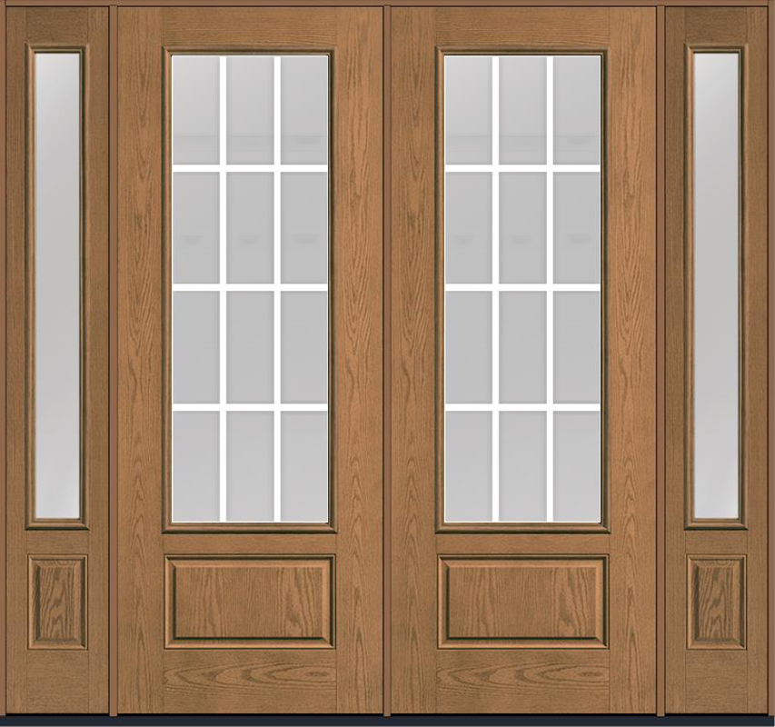 96 Clear Colonial 12 Lite Flat Bar GBG Oak 3/4 Lite 1 Panel Fiberglass Double Door,Sidelites , WBD Impact