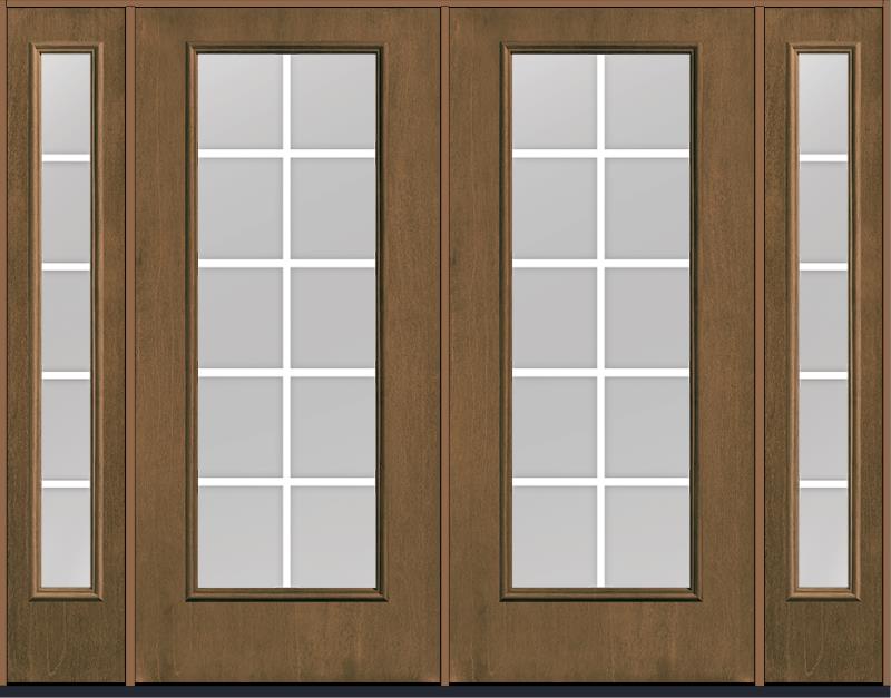 80 Low-E Colonial 10 Lite Flat Bar GBG Mahogany Full Lite Fiberglass Double Door,Sidelites , WBD Impact