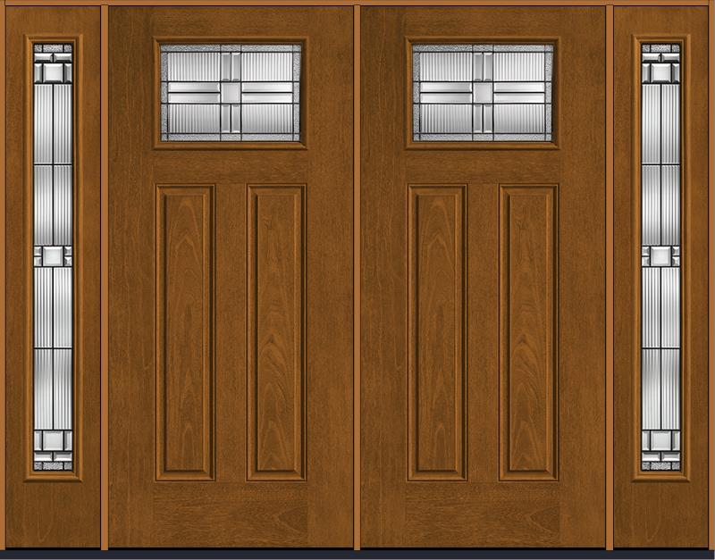 80 Saratoga Craftsman Top View 2 Panel Mahogany Fiberglass Double Door,Sidelites , WBD Impact