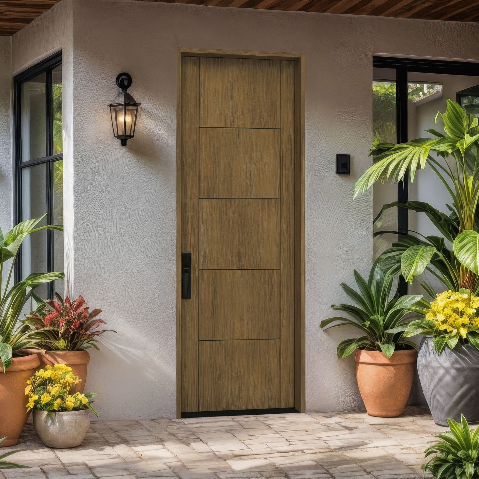 | Overhang Requirements | The overhang must extend at least as far as the distance from the door's base to the underside of the overhang to prevent direct sunlight exposure, with deeper overhangs required for orientations where sunlight may reach the door; refer to warranty |