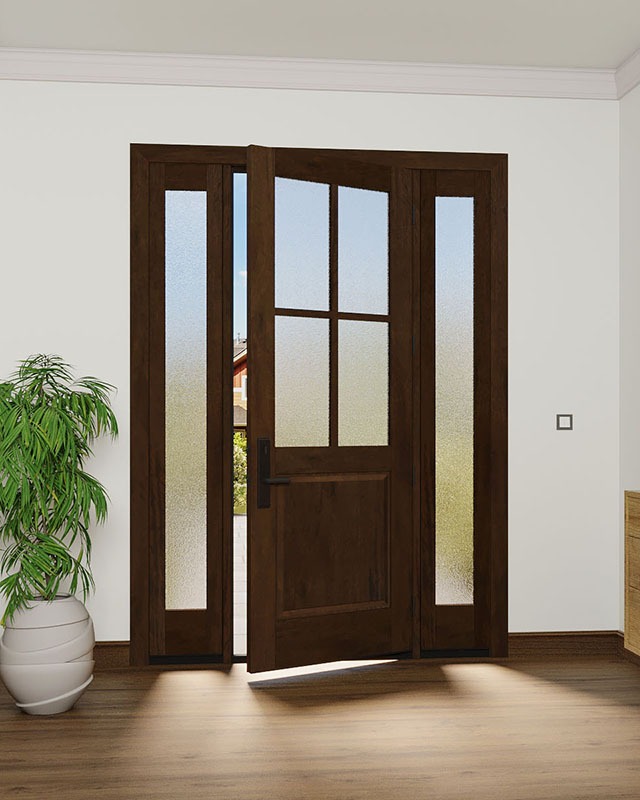 Mahogany 1/2 Lite, 4 Lite SDL 1 Panel Modern Farmhouse Shaker Single Door, Sidelites|G5004-SH