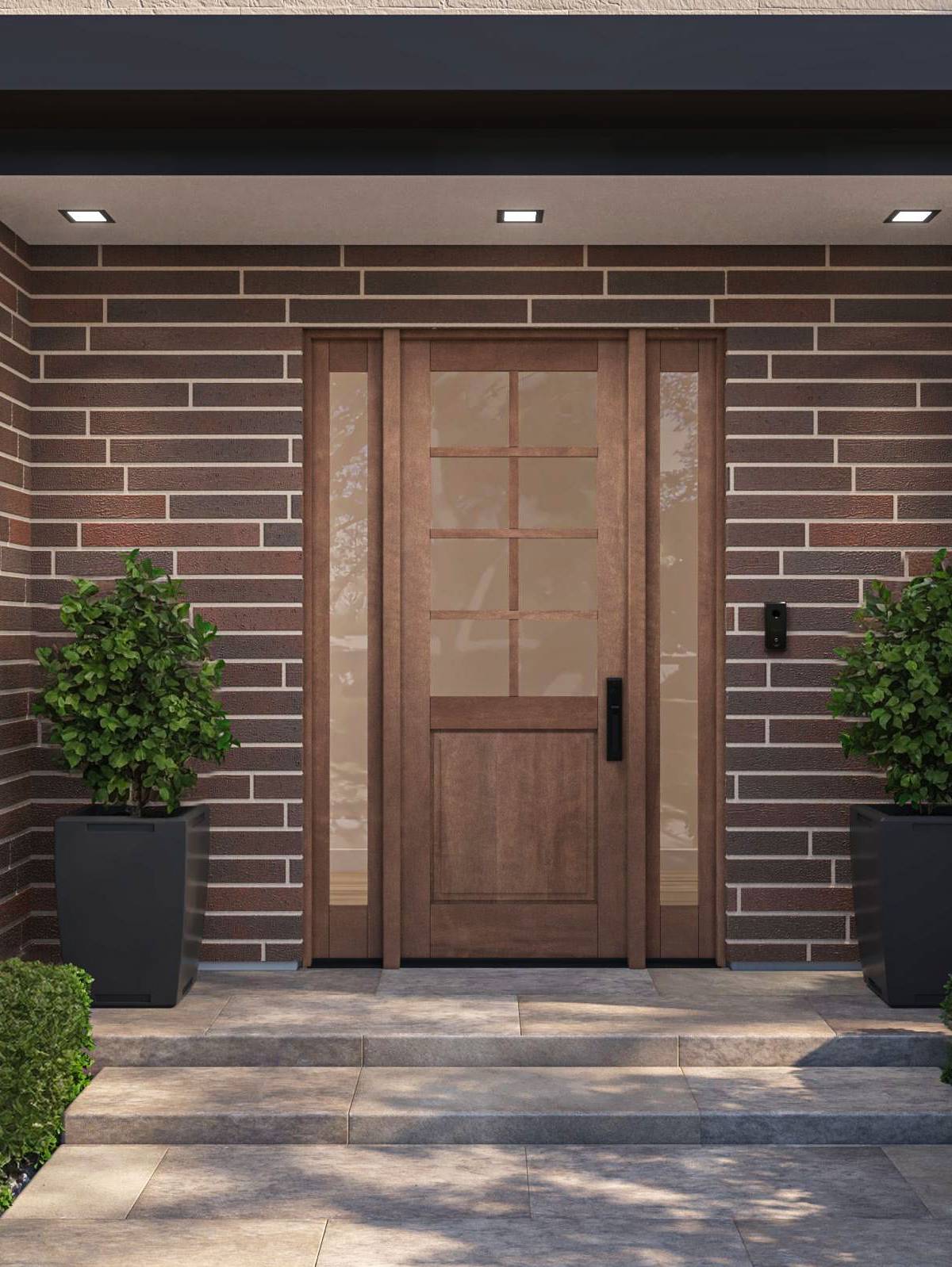 G5008 | 96" | Mahogany Wood SDL 1/2 Lite,8 Lite 1-3/4" Exterior Door with Two Sidelites - DIY RTA Kit